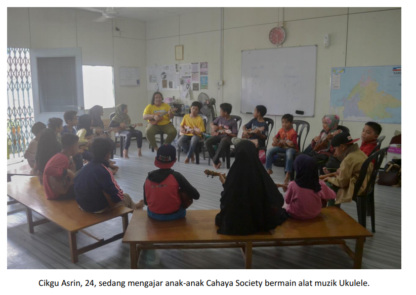 Seterusnya, program pendidikan pula dijalankan oleh NGO dalam kalangan anak muda Sandakan, Sabah itu sendiri seperti Cahaya Society yang didaftarkan atas nama Pertubuhan Pendidikan Anak Cahaya Sabah. Mereka melaksanakan program pendidikan alternatif di Sandakan.  Terdapat pelbagai aktiviti menarik yang dijalankan oleh Cahaya Society bagi menarik minat anak-anak ini menimba ilmu.  Program pembelajaran itu tidak hanya terhad di ruang bilik belajar, Cahaya Society juga menjalankan program-program lain seperti Kem Bestari Solat, ‘Reading Session’ di Taman Baca Cahaya, belajar alat muzik Ukulele, lawatan sambil belajar dan banyak lagi.  Menurut Asrin Utong, 24,  Pengasas Cahaya Society, “Tahun pertama, Cahaya Society fokus kepada akademik.  Tahun kedua pula, akan fokus kepada kemahiran anak-anak ini. Asah kemahiran mereka.”  Seperti sedia maklum, komuniti ini tiada akses kepada pendidikan apatah lagi pekerjaan yang terjamin.  Maka, kemahiran mereka sangat penting untuk diasah bagi kelangsungan hidup anak-anak ini membantu keluarga mereka.
