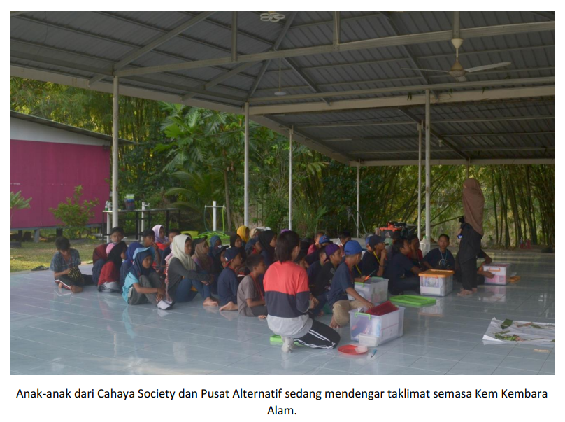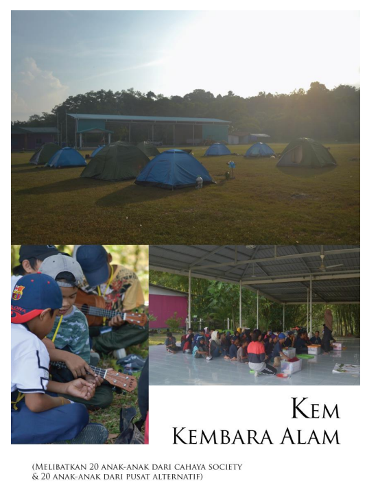 Pada 29 dan 30 September yang lalu, satu kem telah dijalankan iaitu Kem Kembara Alam yang melibatkan 20 orang pelajar Cahaya Society dan 20 orang pelajar dari pusat alternatif.  Puan Jameyah Sheriff, 59, Penasihat Sekolah Belantara dan juga merupakan sukarelawan yang aktif berkata, “Kem Kembara Alam merupakan sebahagian dari modul Sekolah Belantara. Proses pembelajaran, mereka perlu menulis apa mereka telah buat.  Itu maknanya pembelajaran yang kita mahu sampaikan kepada mereka. Ini dipanggil ‘Peer Learing”.  Mereka yang buat keputusan, mereka ajar kawan-kawan, kita cuma tolong. Kalau dilihat secara menyeluruh, kem itu sendiri adalah proses pembelajaran.  Bukan semata-mata keseronokan.”  Dalam Kem Kembara Alam tersebut, terdapat juga aktiviti Bengkel “Ukulele”.  Menariknya, setelah Cikgu Asrin, 24, menunjukkan cara asas bermain ukulele, seterusnya anak-anak dari Cahaya Society pula masing-masing akan mengajar rakan mereka dari Pusat Alternatif bermain Ukulele.  Kini, anak-anak ini bukan sahaja mahir bermain alat muzik ukulele, malah mereka boleh mengajar rakan-rakan mereka.