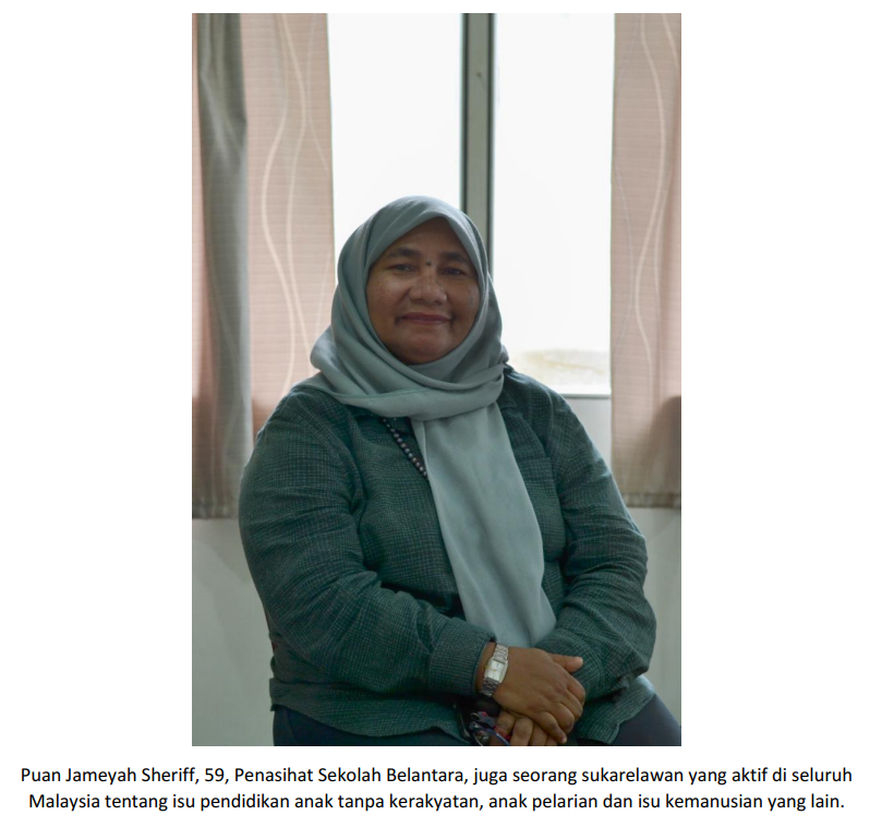Apabila berbicara tentang soal pendidikan dalam kalangan rakyat Malaysia, itu bukan menjadi masalah lagi.  Kini terdapat banyak pusat pendidikan yang disediakan oleh sektor kerajaan dan swasta. Terpulang kepada kita sebagai rakyat untuk memilih mana hala tuju pendidikan yang kita inginkan.  Namun, berbeza situasinya dengan komuniti tanpa kewarganegaraan dan orang tanpa dokumen.  Mereka agak susah untuk mendapat akses pendidikan terutama bagi kanak-kanak.